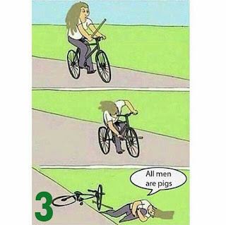 The first part of the picture shows a lady on a bicycle with a rod in her